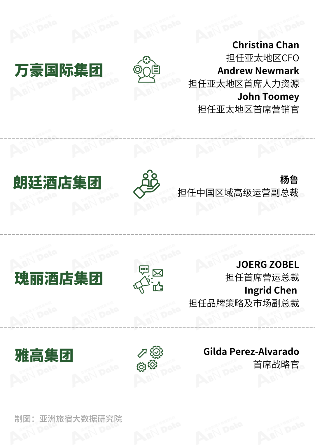 在全球酒店营收和利润双双增长的关键阶段,各大集团正重整其组织框架以应对全新的发展挑战,本月4大企业的7位高管履新,涉及财务管理、人才挖掘、品牌营销等各大管理层。