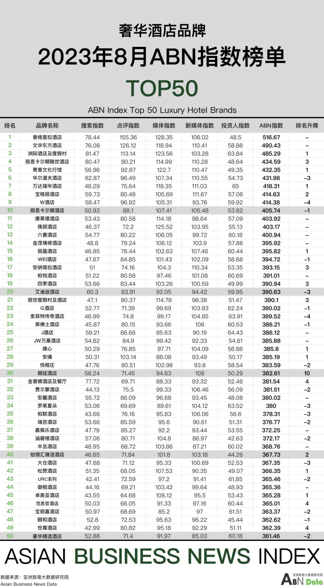 综述:2023年8月,奢华酒店的媒体指数保持高位水平,五个指数监测综合平均得分达到388.202。
