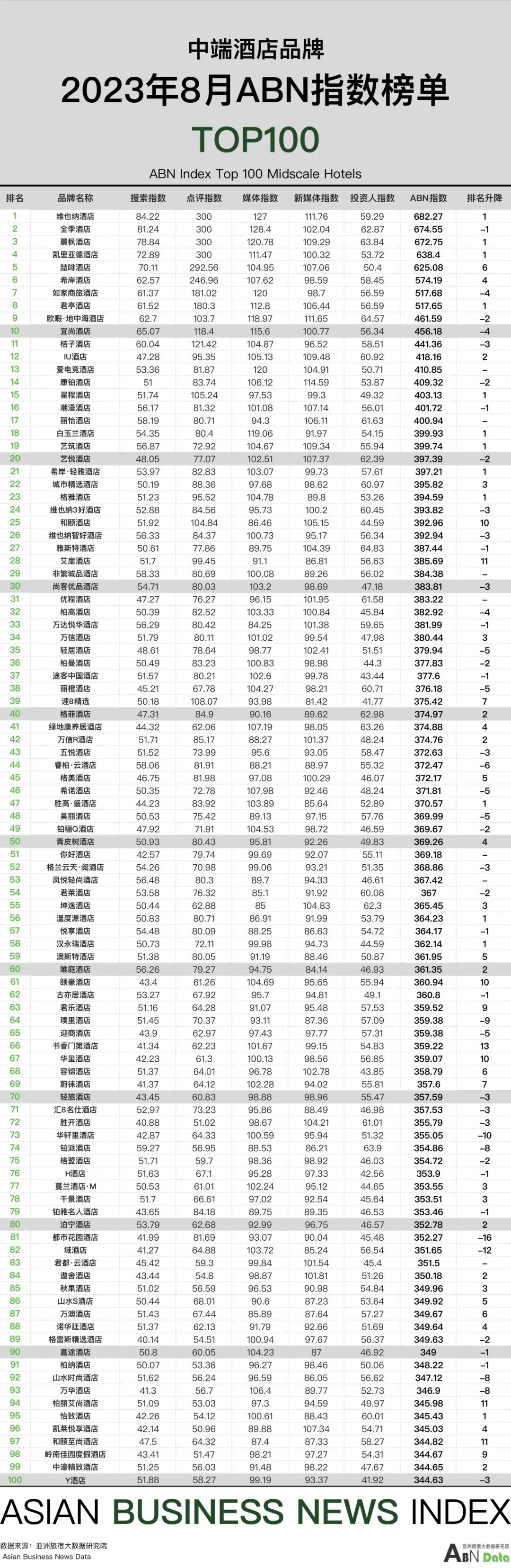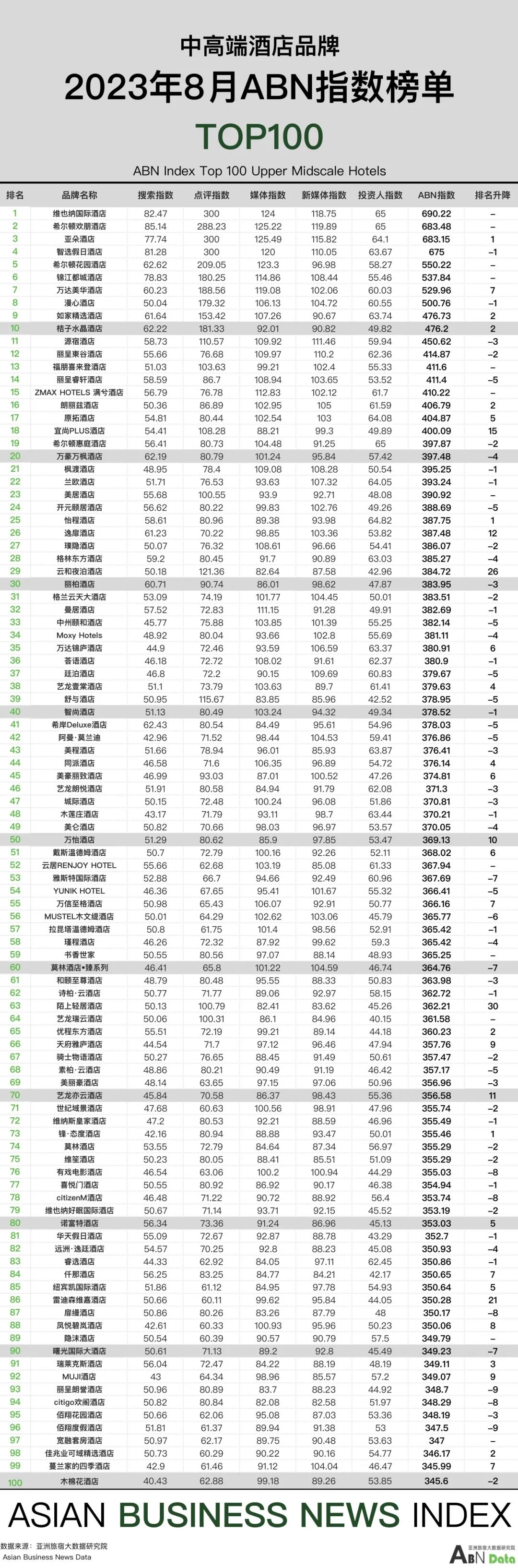 中高端酒店100强榜单