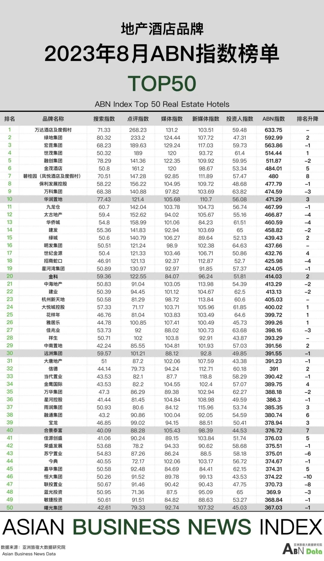 地产酒店50强榜单