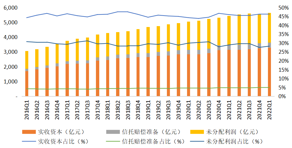 图2 信托业所有者权益的主要构成及占比