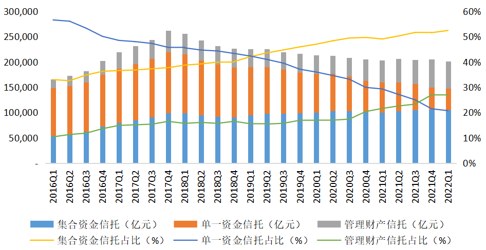 2022年是资管新规正式实施的第一年,尽管在1季度信托业发展面临一定的压力,但行业稳中求进、创新转型的发展态势并没有变。近期,监管部门对新的信托业务分类征求意见,未来以资产管理信托、资产服务信托、公益/慈善信托为主的信托业务体系,有利于进一步发挥信托制度功能,推动行业在经济社会发展中积极把握机遇。