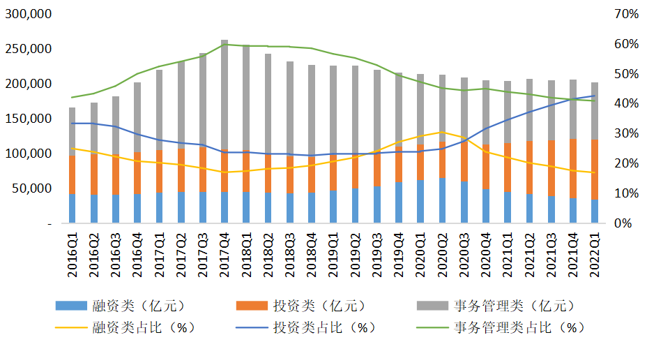 图6 信托资产按功能分类的规模及占比
