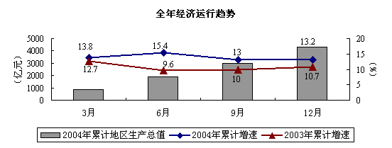 投资:投资增势趋于平稳。2004年年初,全市固定资产投资增速偏高,通过坚决贯彻落实中央宏观调控措施,投资增速逐步放缓。全年全社会固定资产投资2528.3亿元,比上年增长17.2%,增幅下降1.7个百分点。其中,基本建设投资631.4亿元,增长22.7%;更新改造投资175.3亿元,下降18.9%;房地产开发投资1473.3亿元,增长22.5%。