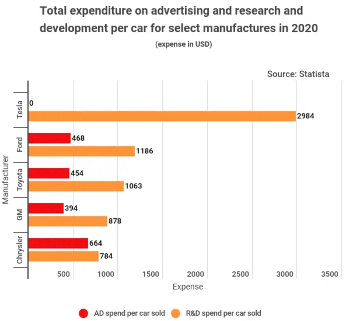 Statista:2020年各大汽车厂商广告和研发费用对比