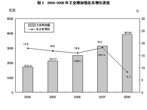 工业:全年全部工业增加值3919.8亿元,比上年增长8.3%。