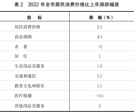 全年全市居民消费价格比上年上涨2.1%,商品零售价格上涨6%,工业生产者出厂价格上涨11.4%,工业生产者购进价格上涨9.7%。