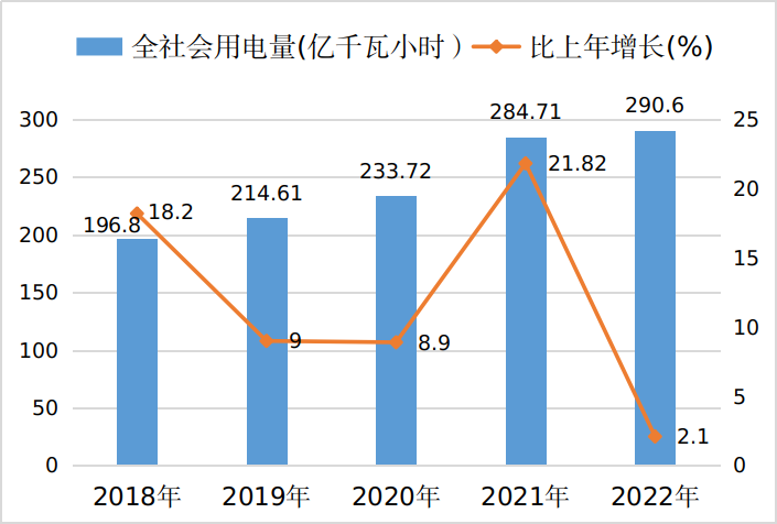 图4 2018-2022年全市全社会用电量
