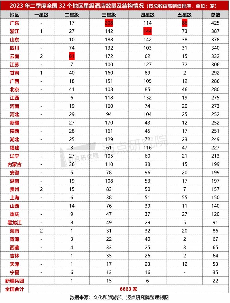 2023年第二季度,共有6663家星级酒店的统计数据通过省级文化和旅游行政部门审核,按星级档次、所属地区进行具体分析如下: