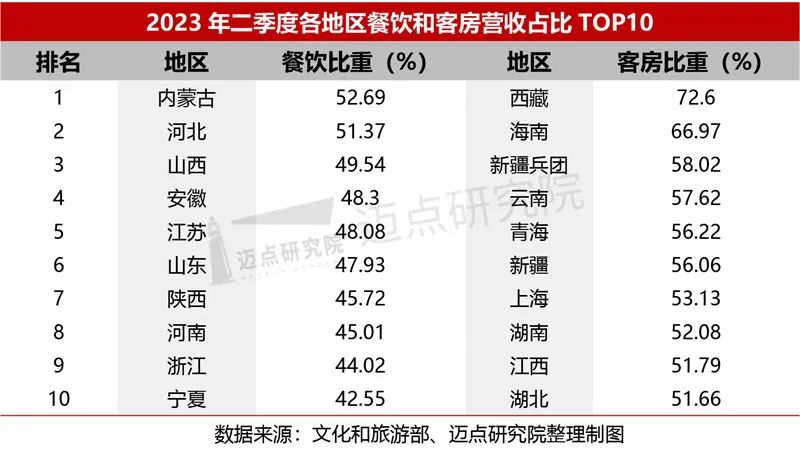 1.营收总况:北京以营收48.32亿元引领各地区,内蒙古、西藏分别占据星级酒店餐饮营收占比与客房营收占比的首位