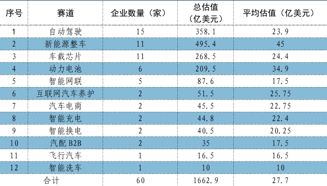 (一)新能源汽车领域独角兽企业数量达60家,总估值达1662.9亿美元