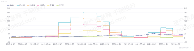 以明阳智能的PCF-Bands为例,可以看到明阳智能的PCF-Bands波动较大,也就是其现金流的情况不稳定,时多时少。这跟明阳智能的业务有关。并且PCF逐渐稳定,且在合理区间内,因此我们认为明阳智能目前价格合理。