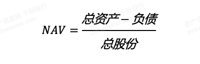 净资产价值(Net Asset Value,NAV)总资产减去总负债即是“资产净值”。资产净值通常按资产及负债的帐面值计算得出。就基金而言,资产净值代表共同基金的实际价值,等于基金所拥有的资产总值减去所有的负债(包括应分摊的开销成本)。