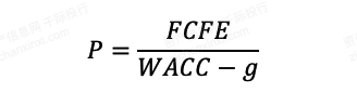 其中FCFEi代表第i期的股权自由现金流,WACC为折现率。WACC公式中的E为股本价值,re为资本要求收益率,D为负债价值,V=E+D,rd为债务成本,T为税率。与DDM模型一样,可以假设其自由现金流的增长存在固定增长率g,从而得到类似的公式: