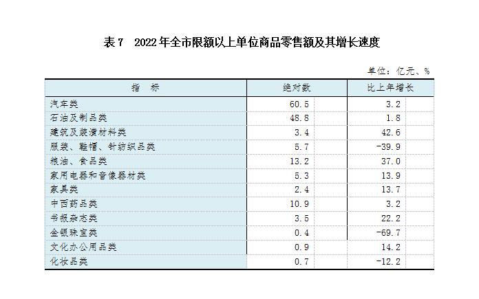 全年全市限额以上单位消费品零售额187.5亿元,比上年增长5.4%。