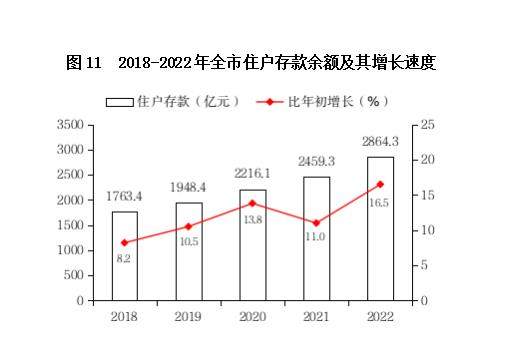 年末住户存款2864.3亿元,比年初增长16.5%。