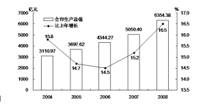 图5 2004-2008年滨海新区生产总值及其增长速度