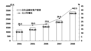 图3 2004-2008年全社会固定资产投资及其增长速度