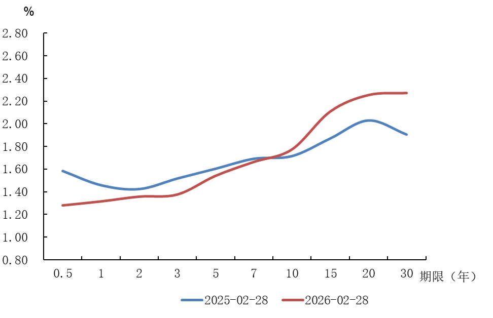 图4 2026年2月国债收益率曲线变化情况