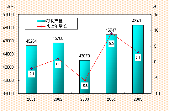 图2 “十五”时期粮食产量与增长速度